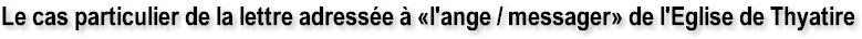 Le cas particulier de la lettre adressée à «l'ange/messager» de l'Église de Thyatire