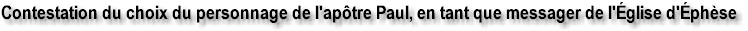 Contestation du choix du personnage de l'apôtre Paul, en tant que messager de l'Église d'Éphèse