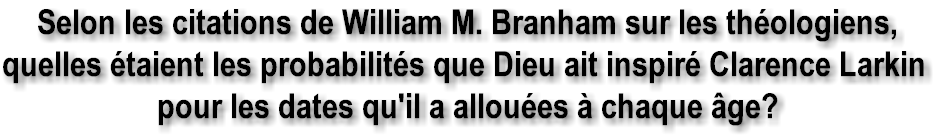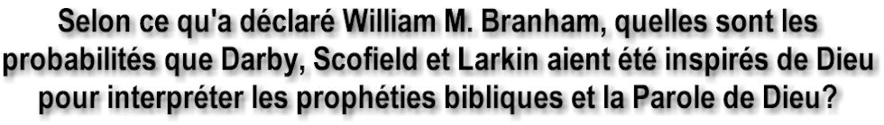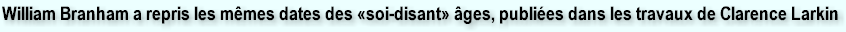 «interprétations» des Écritures! Comment expliquer le fait que William Branham ait délibérément choisi d'enseigner à partir des travaux de Clarence Larkin, et d'utiliser les dates des «soi-disant» âges que Larkin avait «littéralement inventées» ?