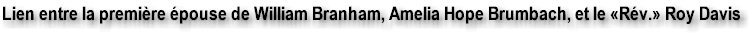 Lien entre la première épouse de William Branham, Amelia Hope Brumbach, et le «Rév.» Roy Davis