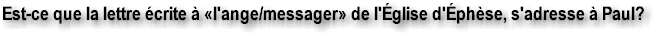Est-ce que la lettre écrite à «l'ange/messager» de l'Église d'Éphèse s'adresse à Paul?