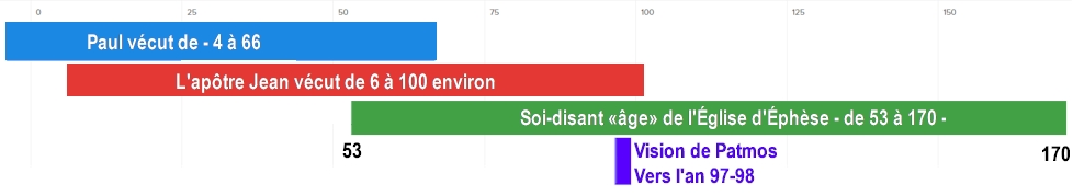 Or, selon l'enseignement des 7 Âges de l'Église, le «soi-disant messager» (Paul) aurait dû être vivant pour prendre connaissance du contenu de la lettre qui lui est adressée. Puisque la vision de L'Apocalypse s'est déroulée vers l'an 95-96 sur l'île de Patmos, les 7 récipiendaires des 7 Églises auraient dû logiquement être vivants à compter de l'an 97, ce qui ne peut être le cas pour Paul, décédé vers l'an 66. De plus, les reproches adressés au messager de l'Église d'Éphèse ne peuvent pas s'applique à Paul, car Paul n'a jamais abandonné son premier amour ni a eut à se repentir de quoi que ce soit.