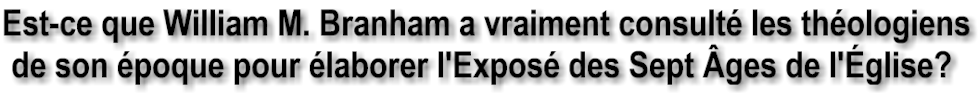 William Branham a consulté les théologiens contemporains pour élaborer l'Exposé des 7 âges de l'Église