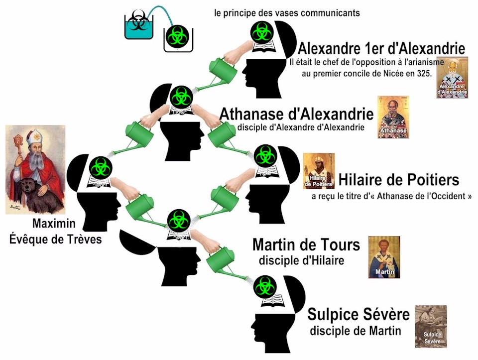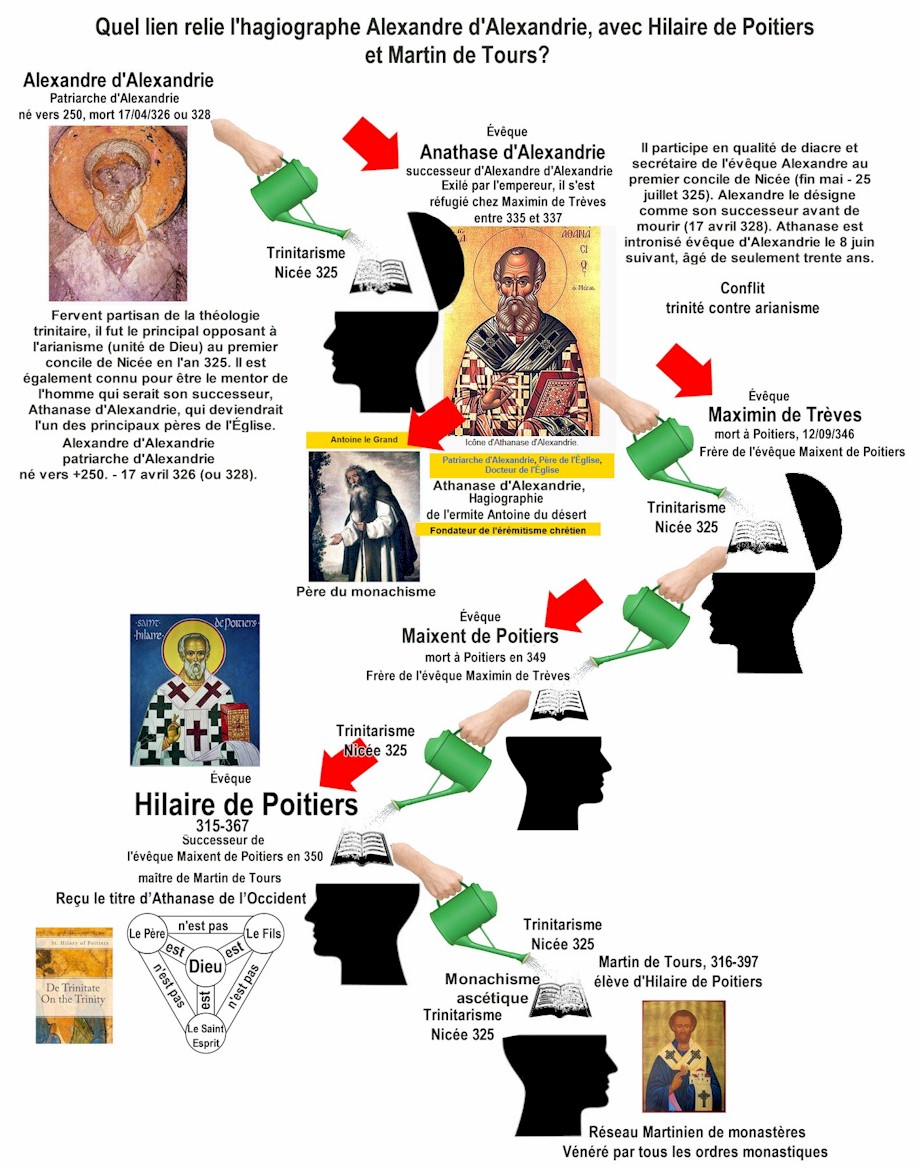 après avoir succédé au patriarche Alexandre d'Alexandrie (312 à 328), qui lui fut à la tête des évêques pro-trinitaires au concile de Nicée en 325, de l'évêque de Trèves (Allemagne) Maximin et de son frère Mesme, qui selon les témoignages fut un disciple de Martin et qui endossa la vie monastique à l'abbaye de Liguréfondé par Martin en 361, et de l'évêque Hilaire de Poitiers dont il devint le disciple inconditionnel.