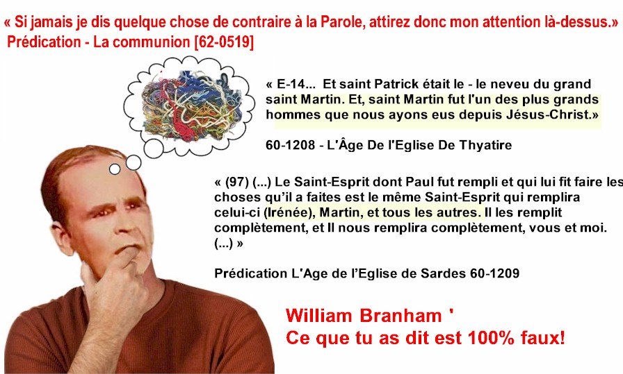 «(160) Saint Martin a été l’un des hommes qui a combattu pour la foi qui a été délivrée pour les saints. Il croyait dans les miracles de Dieu. Il croyait au parler en langues. Il croyait à tout le Testament qui avait été écrit par les apôtres. Il y croyait et il combattit pour cela tout au long de sa vie, et Dieu accomplissait des miracles. »