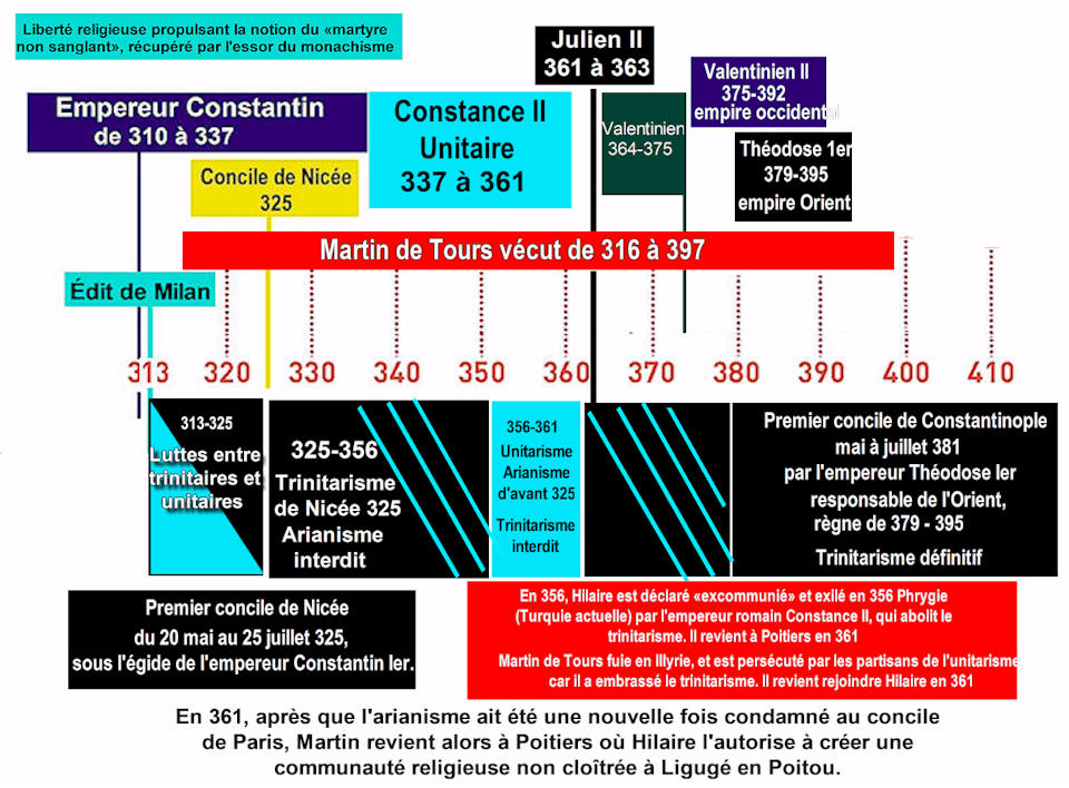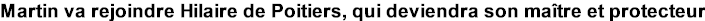 «forcé à l'exil» parce qu'au moment où Hilaire fut condamnée pour «hérésie trinitaire», Martin était son