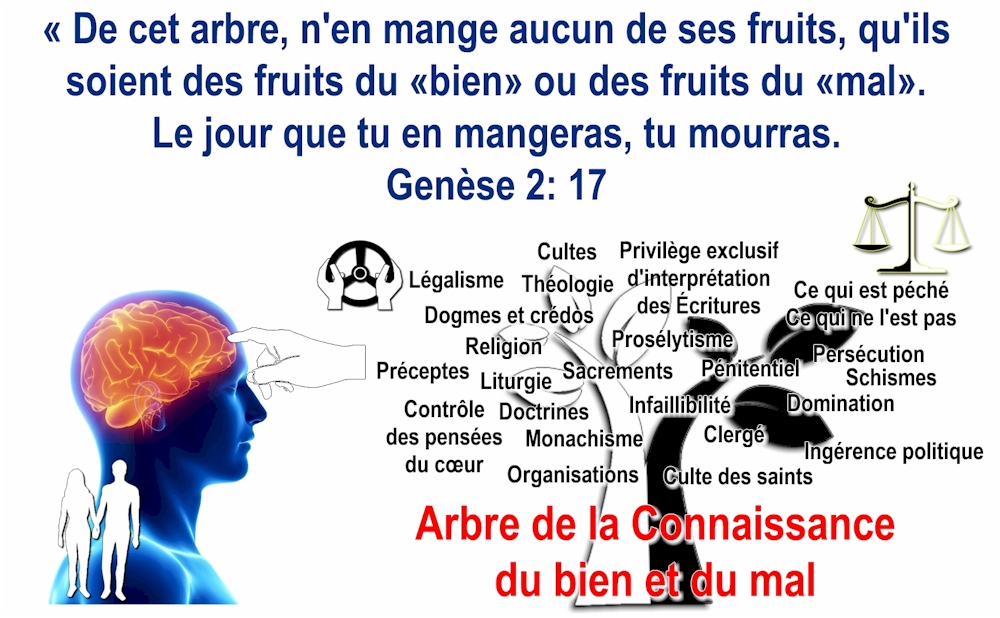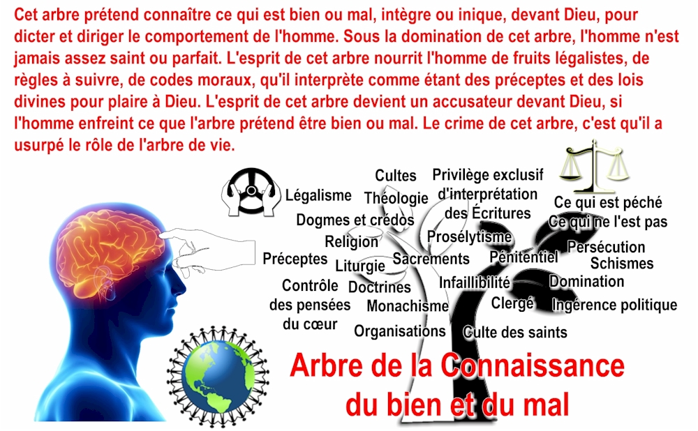 Cet arbre prétend connaître ce qui est bien ou mal, intègre ou inique, devant Dieu, pour dicter et diriger le comportement de l'homme. Sous la domination de cet arbre, l'homme n'est jamais assez
