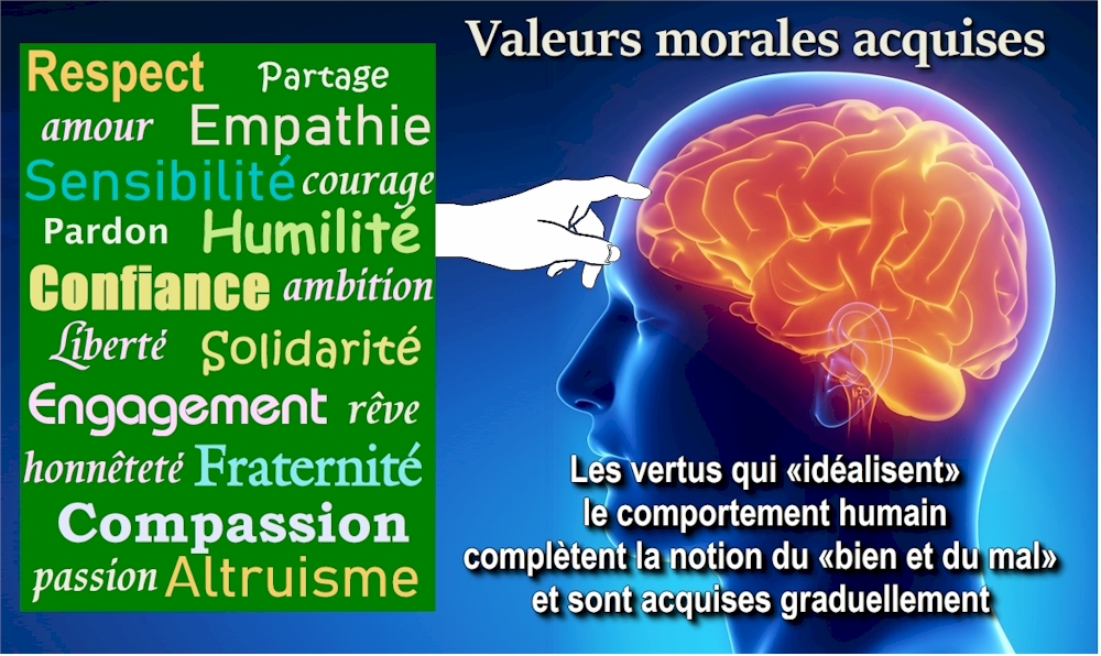 On parle souvent de «valeurs morales» pour désigner l’ensemble des principes partagés par un grand nombre d’êtres humains pour guider leur comportement dans leurs rapports avec autrui. Ces valeurs morales sont souvent associées à de grandes religions comme le christianisme, l’islam, le bouddhisme. Rappelons-nous que la notion de conscience individuelle est un attribut exclusivement humain qui est partagé universellement entre tous les hommes, peut importe leur foi, croyance ou religion.