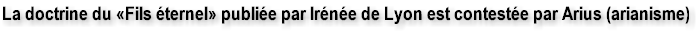 La doctrine du «Fils éternel» publiée par Irénée de Lyon est contestée par Arius (arianisme)