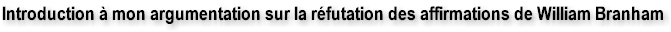 Introduction à mon argumentation sur la réfutation des affirmations de William Branham