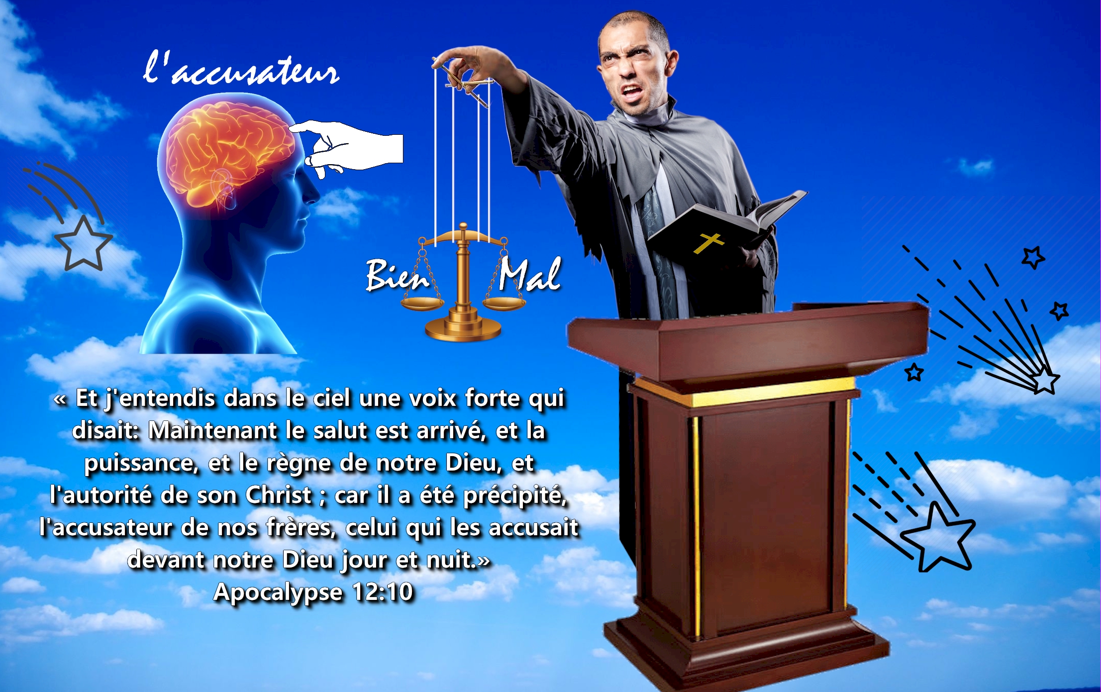 lié à un rôle spirituel qu'il ne peut s'empêcher d'exercer. Cet esprit accusateur ne peut accuser qui que ce soit, à moins de comparer les règles, les lois et les valeurs morales de l'accusé avec son comportement et son témoignage. Les «bons» prédicateurs modernes sont passé maîtres dans l'art de prêcher la repentance et culpabiliser leur auditoire. Rappelez-vous dans le Nouveau Testament l'histoire de la femme surprise en adultère que les scribes et les pharisiens amenèrent à Jésus. Ces scribes et pharisiens étaient maîtres dans l'art d'accuser, bien qu'ils ne «voyaient pas le royaume de Dieu», tout comme Nicodème qui vint voir Jésus de nuit et à qui Jésus lui dit