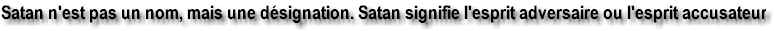 personnage invisible qui se tient près de nous pour nous tenter, comme le veut la tradition, mais plutôt l'esprit adversaire de tout ce qui appartient à Christ, voyons au chapitre suivant, un peu plus de quoi il en retourne. Mais avant tout, Satan signifie «l'accusateur» car cet accusateur n'est relatif qu'à l'humanité.