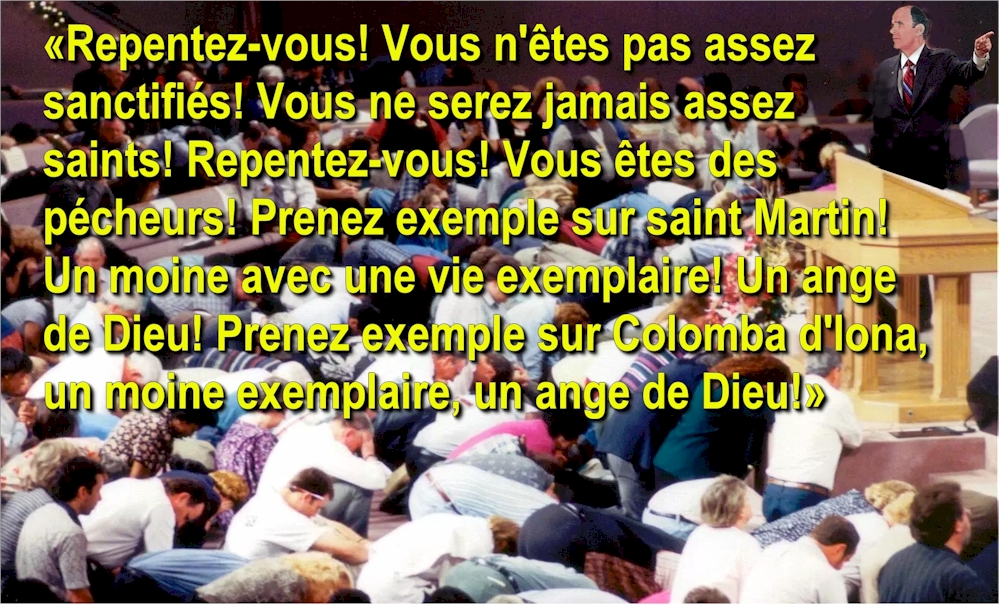 une «vie basée sur le monachisme ascétique» et jamais ce personnage ne s'est approché de la vérité du salut par la grâce du sacrifice expiatoire de Jésus, lequel seul, restaure celui qui croit, à la perfection divine, celle-là même de Jésus. J'aimerais encore une fois souligner ici quelques déclarations de William Branham sur «la foi» de Martin, c'est-à-dire, ce que Martin croyait et enseignait, déclarations que je réfute sincèrement de toutes mes forces. «Saint Martin a été l’un des hommes qui