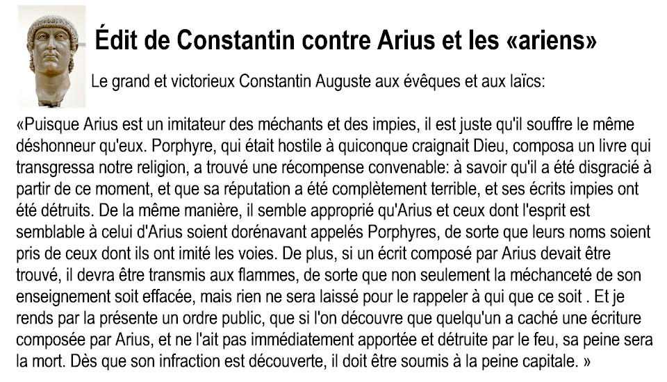 Le prêtre Arius, d'Alexandrie, l'opposant à la «foi trinitaire» du concile de Nicée