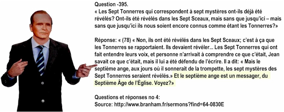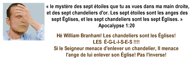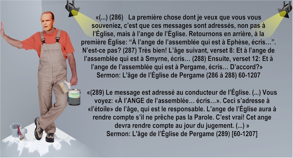 des «vainqueurs» et des modèles pour accomplir des ministères «d'anges/messagers» auprès de leurs assemblées respectives! William Branham n'a jamais cessé de prétendre que tout ce qu'il disait était «inspiré» de l'Esprit.