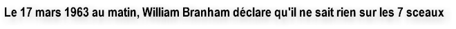 #48) Le 17 mars 1963 au matin, William Branham déclare qu'il ne sait rien sur les 7 sceaux