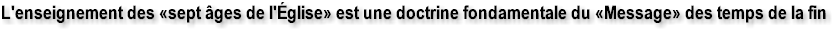 #08) L'enseignement des «sept âges de l'Église» est une doctrine fondamentale du «Message des temps de la fin»