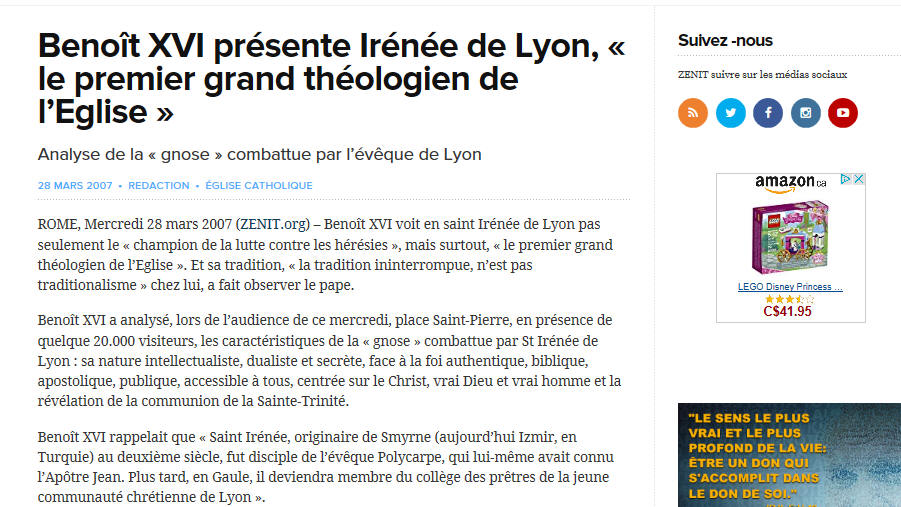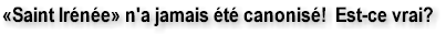 #33) Cinquième réfutation «Irénée de Lyon n'a pas été canonisé»