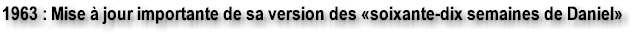 #46) 1963: Mise à jour importante de sa version des «soixante-dix semaines de Daniel»