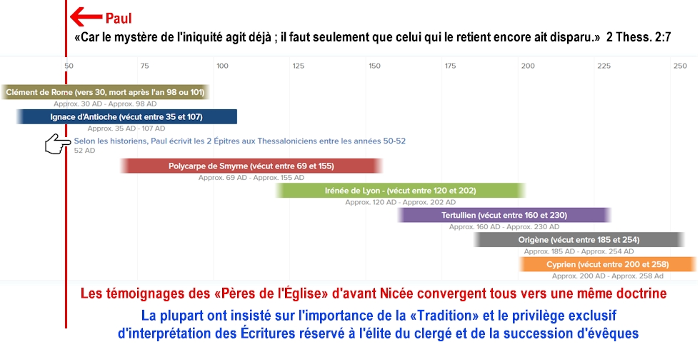 choses! Le pire, c'est qu'il a persisté à élever plusieurs personnages historiques au rang «d'anges/étoiles/messagers» se tenant perpétuellement dans la présence de Dieu, alors que ces hommes n'étaient que des ouvriers du mystère de l'iniquité! De vieux documents datant des premiers siècles de notre ère, tels que «la Didachè» et maintenant publiés sur Internet, nous aident à comprendre ce que les personnages d'Irénée de Lyon et de Martin de Tours croyaient et enseignaient. La Didaché (à prononcer « didakè ») est un document anonyme du
