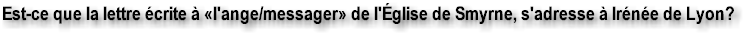 #15) Est-ce que lettre écrite à «l'ange/messager» de l'Église de Smyrne s'adresse à Irénée de Lyon?