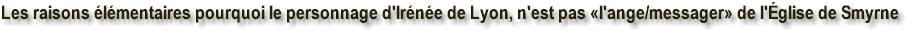 #34) «au mieux de ma connaissance, car la Bible ne dit pas qui ils sont» #35) Les raisons élémentaires pourquoi Irénée de Lyon n'est pas «l'ange/messager» de l'Église de Smyrne
