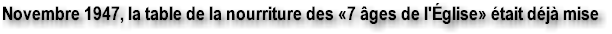 #49) Novembre 1947, la table de la nourriture des «7 âges de l'Église» était déjà mise