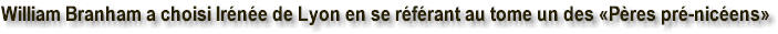 #25) William Branham a choisi Irénée de Lyon en se référant au tome un des «pères pré-nicéens»