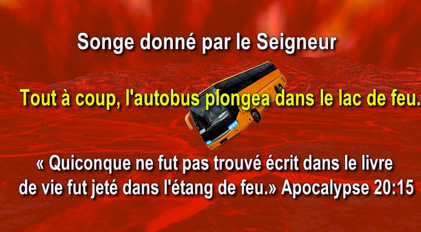 Soudain j'ai vu le chauffeur du bus conduire le bus dans le lac de feu.