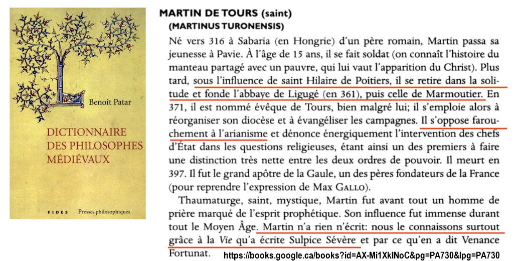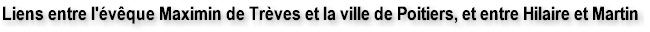 La piste du trinitarisme de Nicée, chez martin de Tours L'influence d'Hilaire de Poitiers, maître et professeur de Martin de Tours Liens entre l'évêque Maximin de Trèves et la ville de Poitiers, et entre Hilaire et Martin Martin admirait Hilaire pour la fermeté intransigeante de «sa foi orthodoxe trinitaire» L'évêque Hilaire de Poitiers, un personnage-clé dans la vie de Martin de Tours