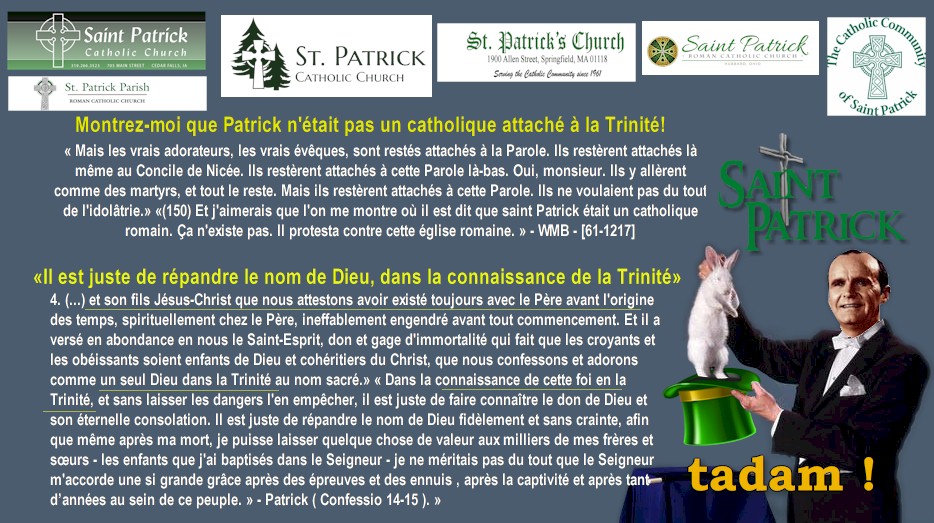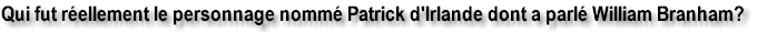 Prédication Qui est ce Melchisédek? [65-0221E] « (164) (...) Pourquoi l'église romaine a-t-elle failli de voir, en saint Patrick, un prophète de Dieu? » (un prophète trinitaire ???) |