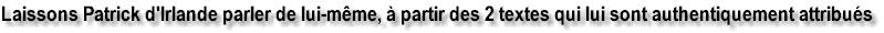 Laissons Patrick d'Irlande parler de lui-même, à partir des 2 textes qui lui sont authentiquement attribués.
