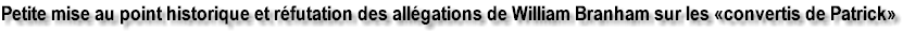 #03) Petite mise au point historique et réfutation des allégations de William Branham sur les «convertis de Patrick»