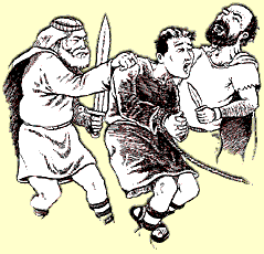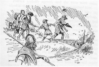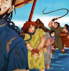 sœurs, et il n’entendit plus jamais parler d’elles. Il est probable qu’elles furent emmenées à Rome pour y être vendues comme esclaves. Lui aussi fut vendu comme esclave, et on lui fit garder les cochons.