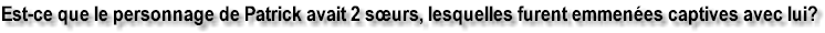 #07) Est-ce que le personnage de Patrick avait 2 sœurs, lesquelles furent emmenées captives avec lui?