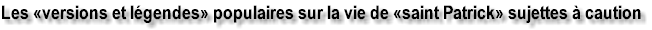 #10) Les «versions» et les légendes populaires sur la vie de «saint Patrick» sujettes à caution
