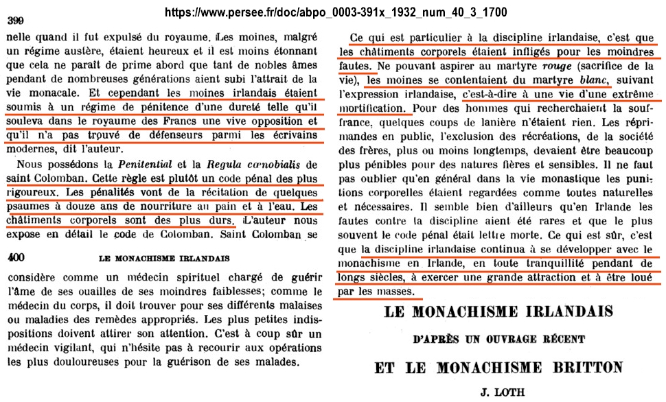 avec l'Évangile Apostolique. À la lecture de plusieurs commentaires d'auteurs qui ont publié sur le monachisme irlandais, il semble que les règles monastiques des moines irlandais étaient très dures, voire cruelles. Les historiens s'entendent pour affirmer que leurs codes monastiques étaient d'une extrême