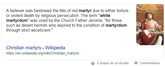La notion de l'auto-sanctification par les œuvres s'appelle le martyre blanc (white martyrdom) (anglais)