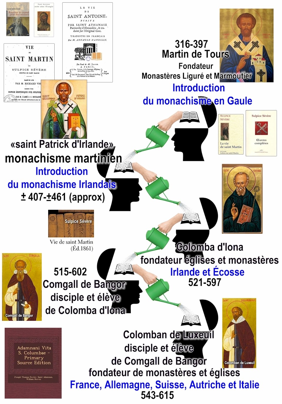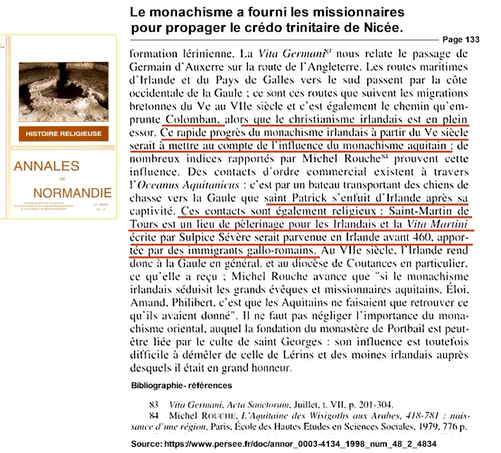 monachisme ascétique jusqu'à Martin de Tours Rappel: Les réseaux martiniens en Irlande médiévale Rappel: tableau 3: Le cheminement du monachisme martinien jusqu'en Irlande L'héritage diabolique qu'a laissé Columba d'Iona aux Irlandais et aux Écossais William Branham a fait l'apologie de personnages de légendes qui n'avaient rien en commun avec Dieu