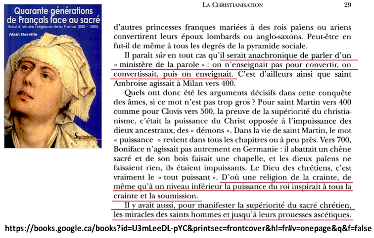 Selon l'auteur Alain Derville dans l'ouvrage «Quarante générations de Français face au sacré», à l'époque de Martin de Tours et plus tard celui de Columba d'Iona et de Columban de Luxeuil, la «conversion au christianisme» était un prosélytisme basé sur l'admiration de la