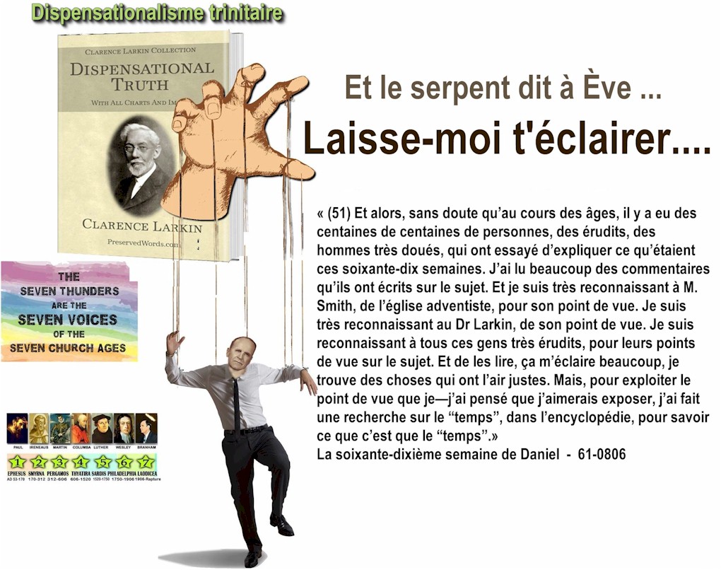 Cette étude vise expressément la crédibilité de l'enseignement et la «doctrine dispensationaliste» des 7 dispensations ou «7 âges de l'Église» ainsi que celle de la «révélation progressive» sur laquelle repose tout l'enseignement des Sept Âges de l'Église, des «7 sceaux» et des «7 tonnerres», tel que prêché par William M. Branham. Ce site