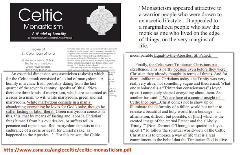 Tout comme ce fut le cas en Gaule et en Europe avec le monachisme des ascètes du désert relancé par la formule «améliorée» de Martin de Tours, le même vieux concept diabolique et antichrist d'auto-sanctification du monachisme celtique devait, d'une part, visiblement créer une classe d'individus