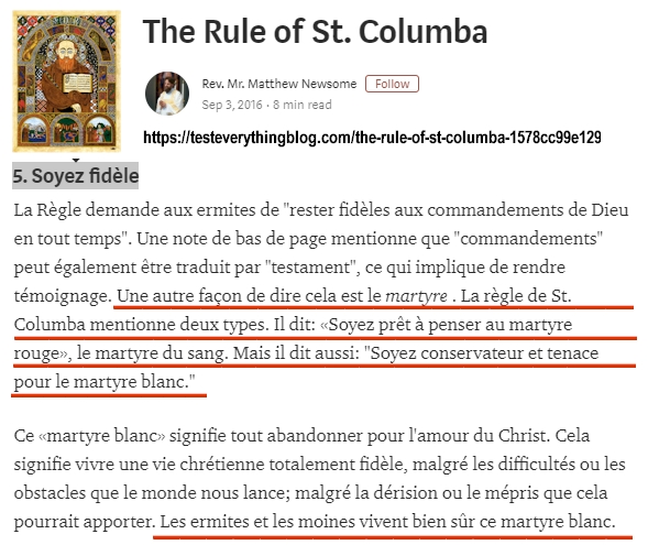 La «règle monastique de Columba d'Iona» liée au concept du «martyre blanc» :
