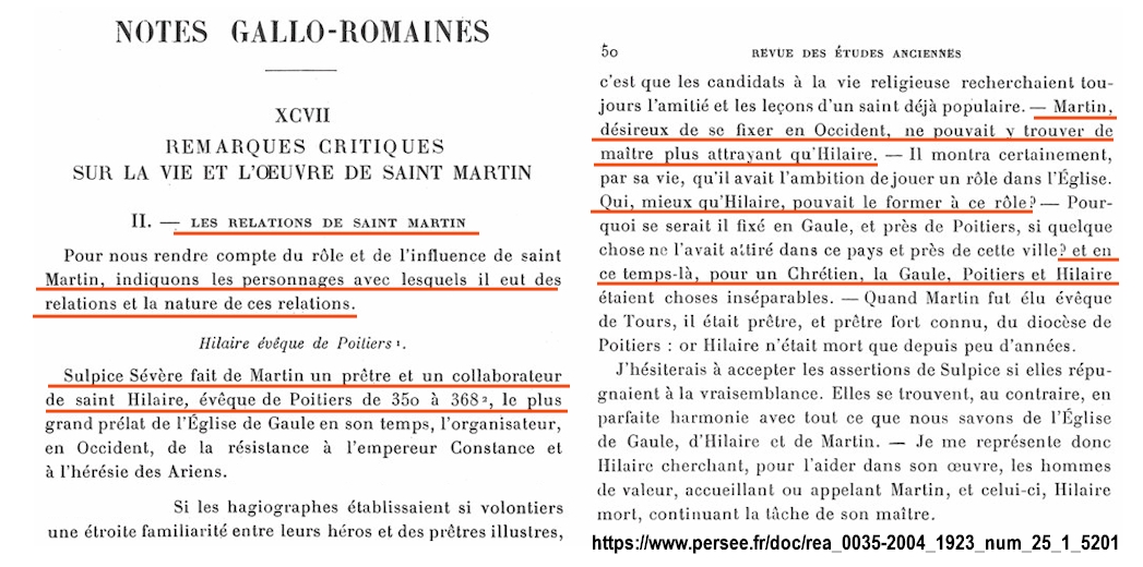 Commentaire: Hilaire fut le maître de Martin de Tours. Martin se rangea du côté trinitaire sous l'influence d'Hilaire de Poitiers.